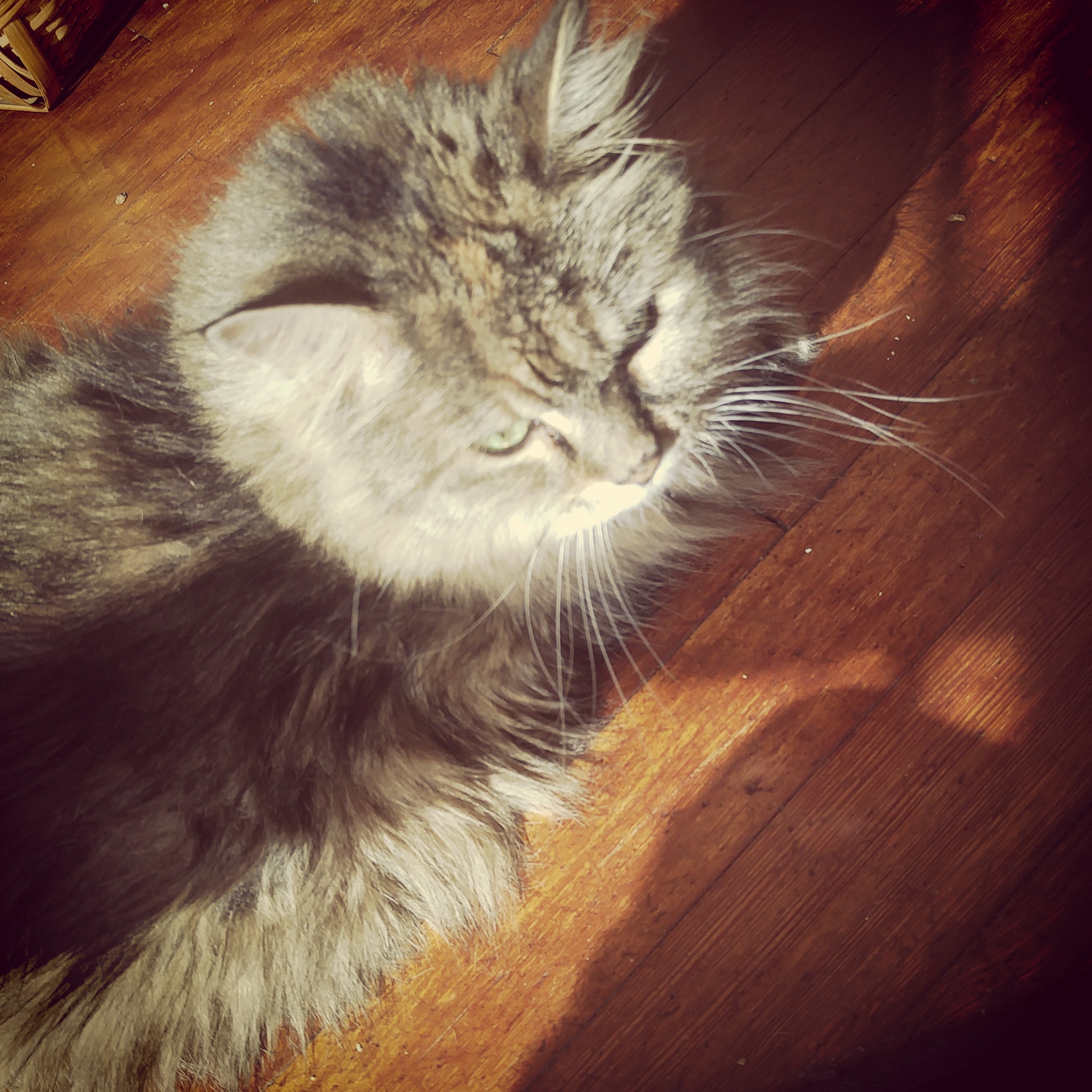 Some of you may know that Anty really really really does not like phones. That is from a time, before me, when she had to keep the old ringy kind of phone with her all the time. Even in the litterbox. She may not want me saying that last part, so keep it between us if that is okay. Thank you. Anyway, that was a time when she had to talk to people vets about her papa, her own anty, and about Uncle. None of them had the same people vets because they were all sick in different ways, and so the phone rang. A lot. This was not only before me, when Olivia was Anty’s mews, but when I first came into the family, too, and I was really really scared of everything. If you knew where I came from, you would understand why, but I prefer not to talk about that. I was taking my cues from her, and if she got scared, I got scared, so when the phone rang, usually with an emergency, often one emergency interrupting another emergency, we both got scared. Sometimes, I got so scared that I would lick the fur off my tail. I do not do that anymore, because I am not scared anymore.