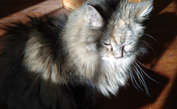 Hello, all. Skye here, for another Feline Friday. Things are taking a definite swing toward fall this week. The sidewalk part of the construction is finished in front of our house, so it is not quite as noisy and the floor does not shake as much. Anty is very happy that there is actual sidewalk now, so she can wear heels when she leaves the house if she wants to, without risking ankle death. Construction is not completely done, as they still have a giant pit in front of the house next door, and we still have new trees to be put in where the old trees used to be. New trees means birdies will come back. I love watching birdies in the morning, so I am excited about that.