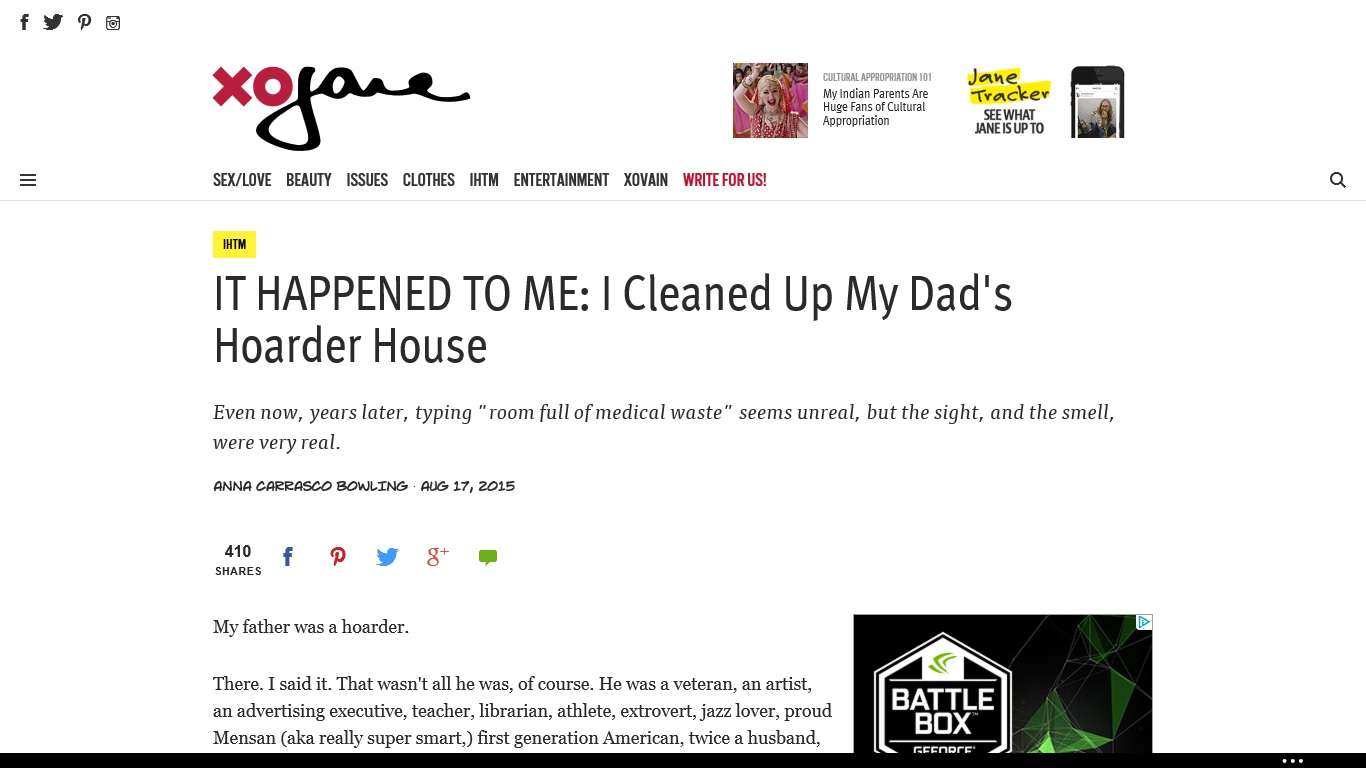 This week, Anty had her first article published on XOJane.com. That is a website for humans to read about a lot of different things, from clothes and makeup to relationships and interesting things that happen to humans. That is where Anty came in. This next part may be hard for some readers, so it is okay if you do not want to read much further or click on the link.