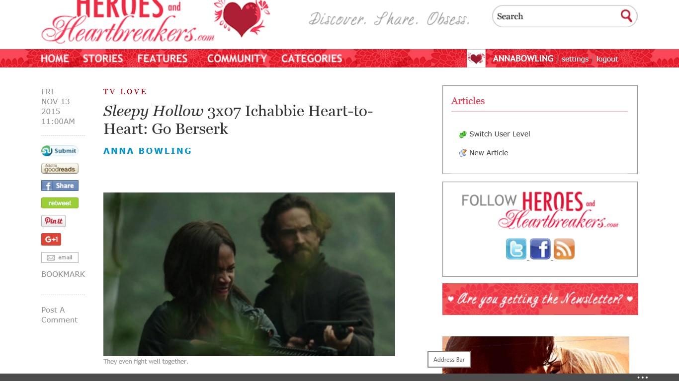 First, Anty has a new post up at Heroes and Heartbreakers. She said I have to put her new posts up first, or I will run out of room when I get talkative. Her Heart to Heart on last night’s Sleepy Hollow is now live. It is here and it looks like this: