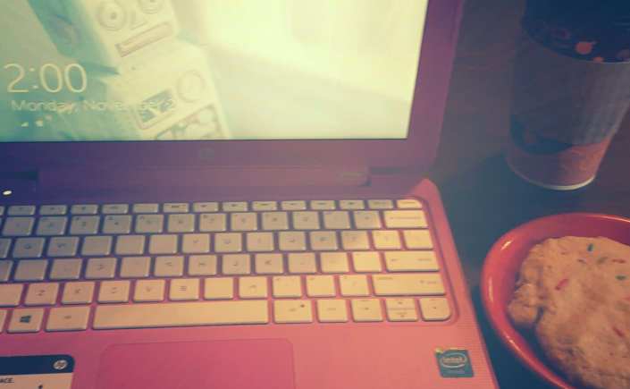 Today, I have made myself get dressed, put on makeup and head to my favorite coffee house, because the need to do normal things is overwhelming. Note that I did not list “do my hair” in the preparations to leave the house, because I have honestly forgotten what one does with face framing layers, and it’s only one day post wash. Yep. Been in the house too long. I forgot to ask the barista for my customary splash of skim milk, which means my tea now has a splash of the community half and half. Cookie is less because I am getting down to Serious Novel Writing, and more because I have not had lunch and did not want to cook. One look at refrigerator full of delicious Thansgiving leftovers, and nothing but nope. I am dealing with my laptop’s touchpad, because I was too tired to pack the mouse, and wrangling with the mouse cord is not worth the aggravation.