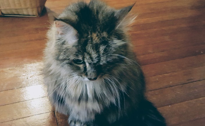 Hello, all. Skye here, for another Feline Friday. Anty has been very busy this week, doing a lot of writing, which is a very good thing. I rewarded her efforts by sitting still for my picture, even if I would not look up at her. I had my reasons. This morning, a realtor human came by with an inspector human, to look at some things about the apartment that do not concern me. Anty put me in my and Mama’s room while the strange humans were here. I do not like it when strange humans come into the house, but if that is what has to happen for a while, I will find a way to deal. Probably from under one of the beds.