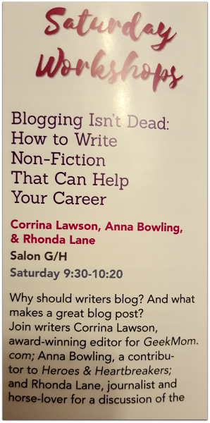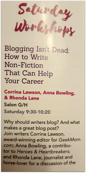 AnnaAuthorProgram Published April 12, 2017 at 298 × 600 in Post-Conference Recap, Part Two ← Previous Next → We’re in the program!