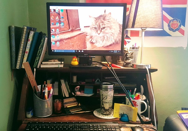Not going to a conference means there is nothing to unpack. I will allow that I did laundry this morning, but that brought with it a chance to finish reading one book on my Kindle and start in on another. I am not going to claim full awakeness at that phase of the morning, or even this one, but I know what’s on my list, and checking off the items on it gives me a sense of satisfaction, so here we go All I have to do is babble my way to the magic seven hundred and then I get to go play with my imaginary friends. I should probably also have some sort of lunch, because bodies (and brains) need nutrition, and it dovetails nicely with Skye’s lunch (she is not eating doves, either whole or tails-only; she is eating her regular fish jelly. She wanted me to make that clear.)
