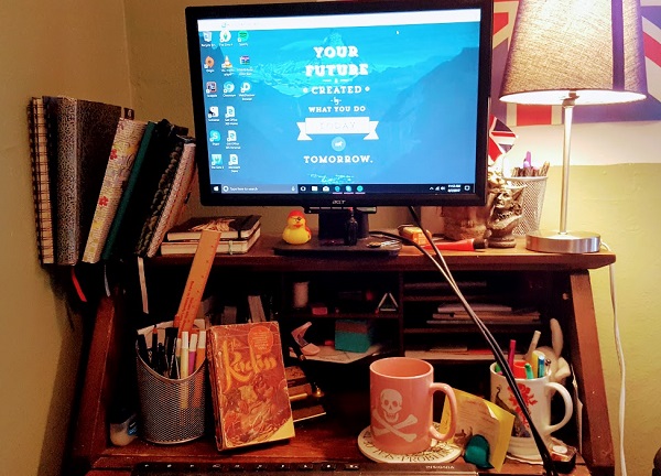 That book in today’s deskscape is the actual copy of The Kadin, by Bertrice Small, that I stole from my mother’s nightstand and sneak-read under the brass bed in the guest bedroom. Only a few pages into that book, at the tender age of eleven, I knew I had found what I wanted to read and write for the rest of my life. By the time my mother found her book missing and followed the flashlight beam, I knew squat doodle about the romance genre. I could kick myself now, for not picking up those early copies of a magazine then called Romantic Times, which, soon after, alternated with Rave Reviews, which covered all genres, with a smaller romance section than Romantic Times. but, then again, I was young, my allowance may not have covered the expense, and my parents probably would have had something to say on the matter. Also the whole not knowing romance novels were really a thing, thing,. but I digress. I stole the next Small book from that same nightstand (by now, my mom was on to my larcenous ways) and, by the time Adora came out, I received my own copy as a gift, because everybody involved knew I was going to read it anyway.