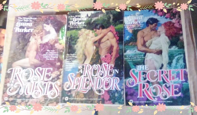 Not sure there is much to report on Aunt Anna’s Goodreads challenge, since this week was mostly Chez Grandmere stuff. She does mean to make up for that, though, and part of that will be going through the books she rescued from Chez Grandmere last week. Here is one trilogy she can’t wait to re-read. It is the Rose trilogy, by Laura Parker, and each book is set in a different era. Aunt Anna likes that kind of series, a lot.