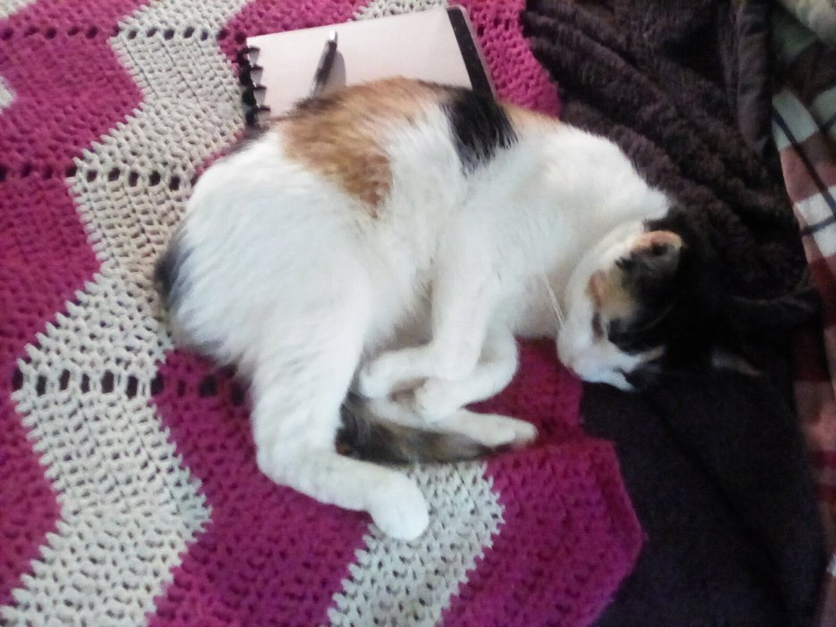 In case you are wondering how our Thanksgiving went, it was pretty fun. Aunt Anna played Sims a lot, Aunt Linda knitted, and Uncle Rheuben made the best grilled cheese and tomato soup for lunch. Dinner was frozen lasagna, for reasons I am not allowed to go into, but the humans said it’s the company that counts, and they still count this as a successful Thanksgiving. They will have turkey and some pies later.