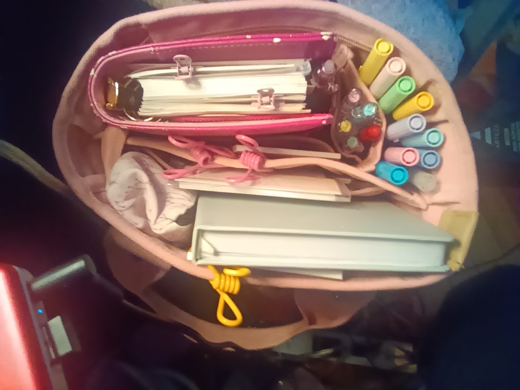 Enter the modern variation. Well, one of them. These days, I like making kits for specific purposes. Above, is my mental health journal bag. The pink book is my mood tracker, with a year’s worth of inserts. The green book is therapy notes. I like being able to pick up one thing and have all I need for that purpose with me, no looking for needed supplies. Having a limited selection of supplies helps me focus not on the things, but what I can do with the things. For me, that shifts the focus from the tools to the expression, and that carries over well to writing.