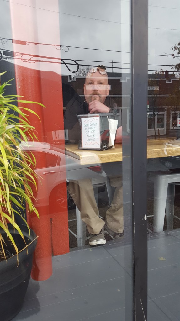 When we walked home that night, it was dark. Today, at that time, it was light, and temperature was in the seventies, if not eighties. There was sweat. The contrast is/was big. RLRH loved spring. I am more of a fall/winter girl. Housemate and I have been discussing when to turn on Koolio, our air conditioner, now adorned with a handlebar moustache sticker. I had joked about putting googly eyes on Koolio, to which RLRH was opposed. I told him he’d said nothing about handlebar moustaches. I could put the googly eyes on now, but I don’t think I will.