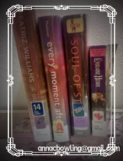 So, that’s this week. It’s hot, it’s humid. I’m in front of a fan, in a fetching white t-shirt dress, staying nicely hydrated, and doing quite well with the reading, which is a very nice new development. A little Bertrice Small, a little Maeve Binchy, a little YA. Seems to be working. What are you reading, or planning, or planning on reading?