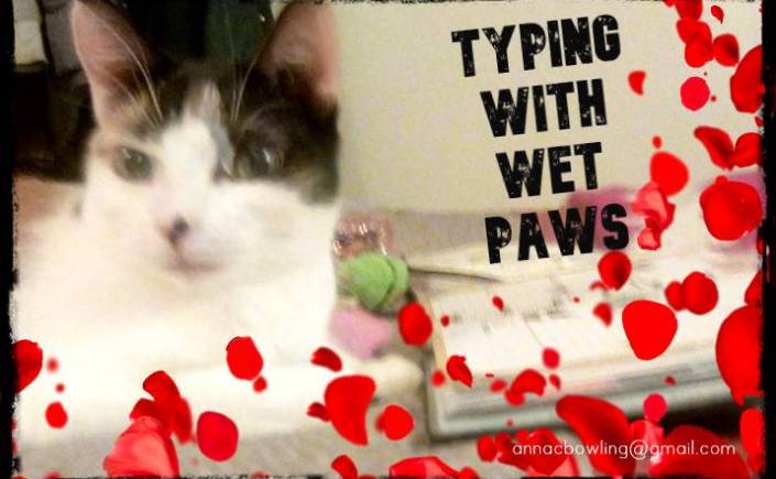Mama Anna wanted to remind me that one of my main reasons I get to blog once a week is that I am to be her PR kitty. That means I have to talk about her writing. She’ll admit it hasn’t been great as of late, which is one of the reasons she is seeing the talking vet. The talking vet helped her give herself a couple of assignments. First, she needs to finish reading the novel she is currently reading, which is Lisbon, by Valerie Sherwood. She loves that book and has read it only once, so it is like a new book, but one she knows she will like.