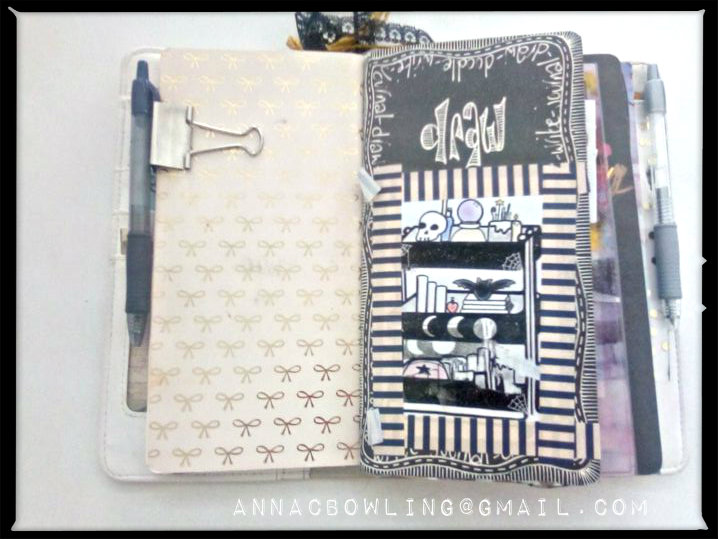 First thing I did when I got back to the motel was to ensconce myself on the bed, and rip everything out of each cover. Everything. Every insert, every accecssory, pouch, piece of deco, etc. Everything. Doing that, one finds that one has a heck of a lot of…stuff. Stuff one may not remember what it was doing there in the first place. Clear the decks, and then start adding.