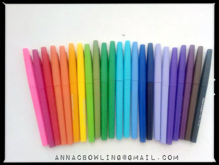 Yesterday, I busted some old friends out of jail. Still dealing with adult-y things, which is progressing, and also demanded that I go to a sure-fire mood booster; stationery. Housemate and I swung by the storage unit, so I could get my Papermate Flair pens all in one place.
