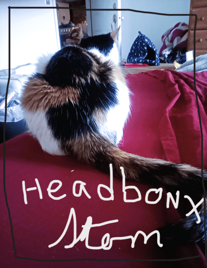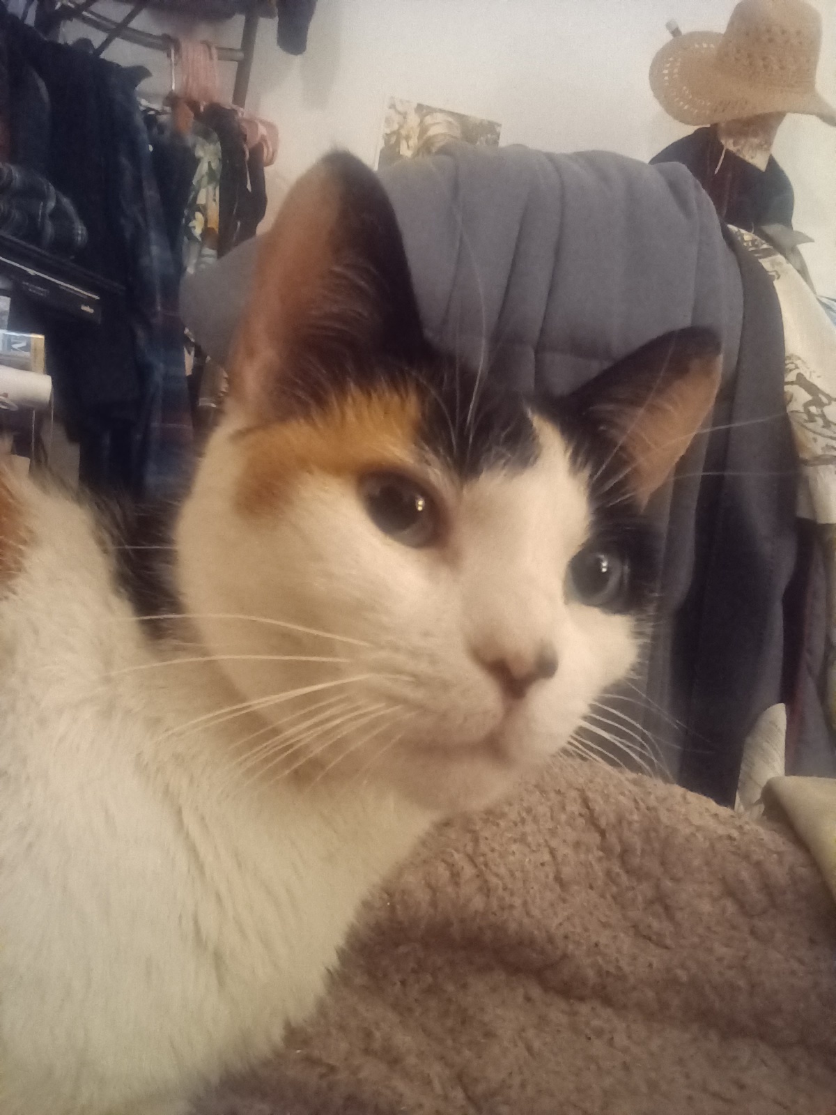 Storm is definitely doing her job. When I get home from the hospital, she meets me at the door. She leads me into the bedroom, and insists I lie on the bed, so she can jump on me, loaf, and purr. I pet her. She is warm and soft. She insists that Housemate and I give her gushy food when we have our dinner. She has a new tilted food dish that is only for gushy food. She deserves all the treats and many belly rubs.