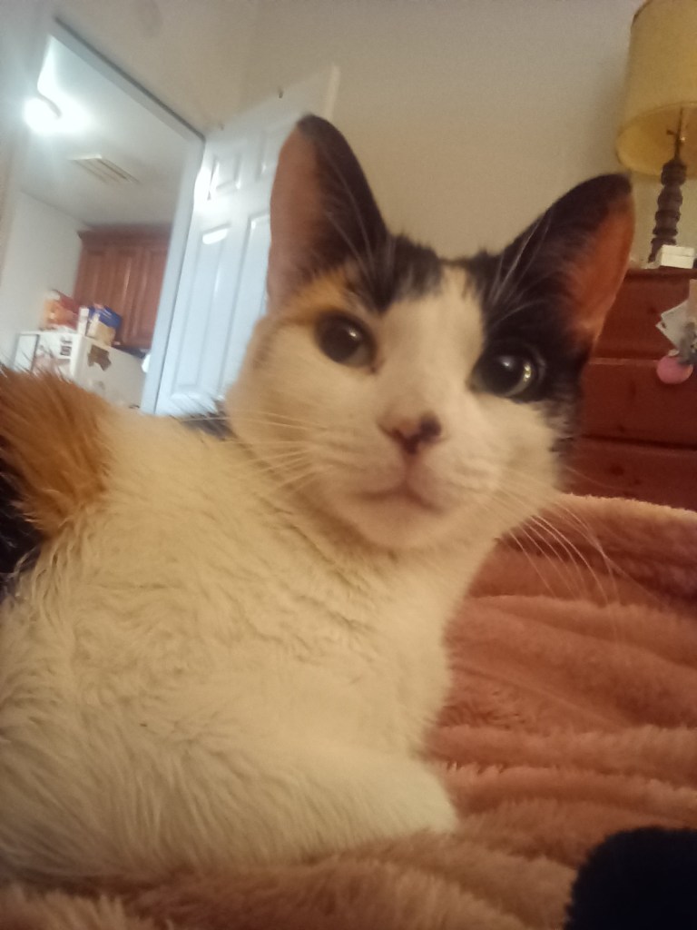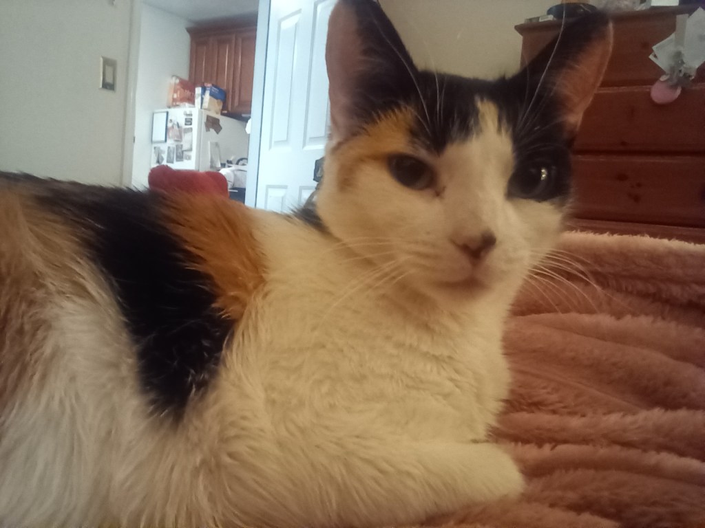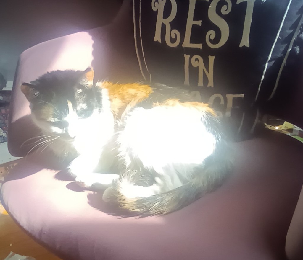 My job, when Mama Anna gets home, is to greet her at the door and lead her to the bed, so she can tell me all about her and Papa’s day, and then we cuddle. Then I get gushy food. I also inspect the bag Mama Anna takes with her for the day. It has lots of pockets, so it is super interesting. She can get a paper book, her tablet/Kindle, and journal stuff. It could theoretically also hold a calico cat, but apparently they do not allow cats into the people vet. Hmph.