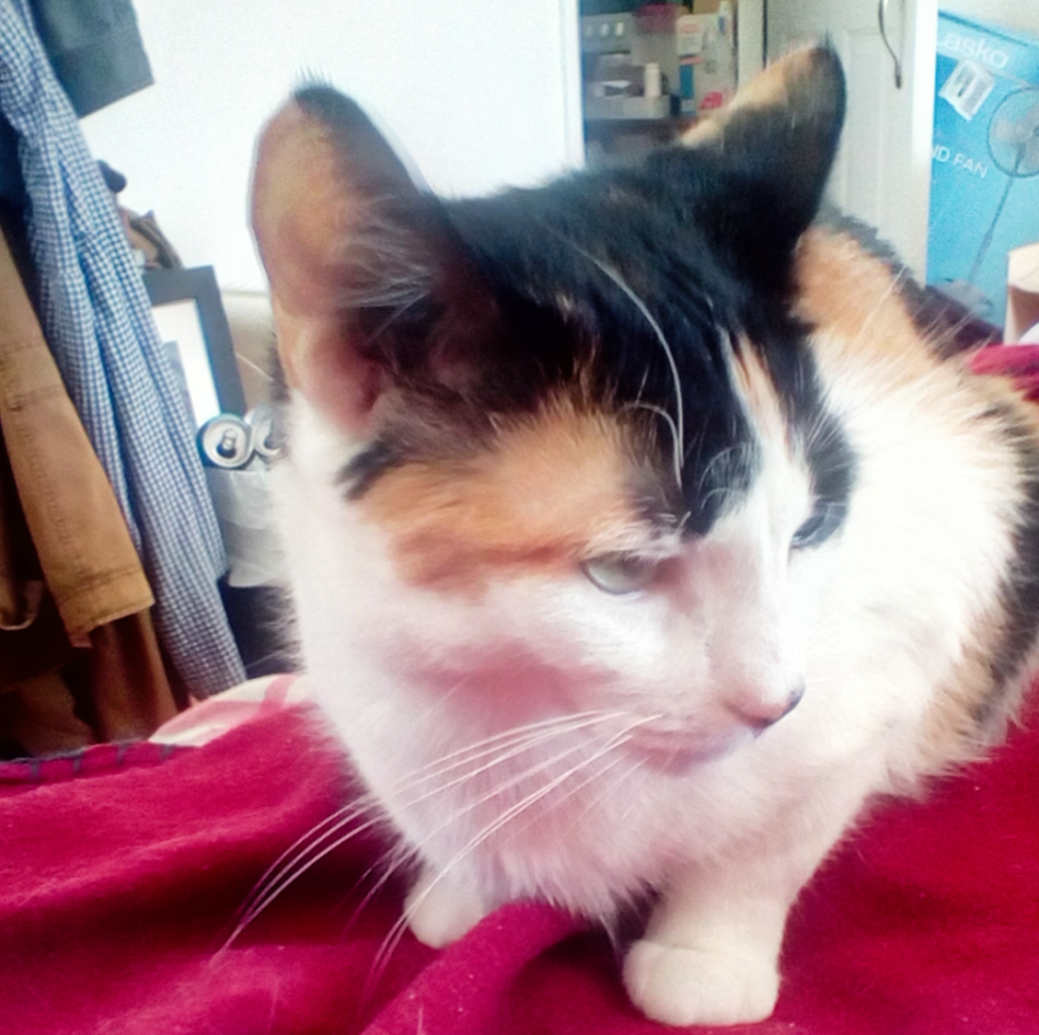 Around this time last year, some of Mama Anna’s cousins came to visit. One of them wanted to see that both sides of the fur around my eyes are different colors. As you can see, they very much are. One of the perks of being a calico.