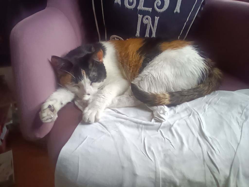 Her favorite week of the year is what she calls the tucked away week, from December 25 to January 1, aka between Christmas and New Year’s Day. She has only this year acknowledged that there is a second (or rather, first, as October comes before December) tucked away week, and that is between October 24th (her birthday) and October 31 (Halloween.) Start and end with a holiday both times, special foods and customs, seasonal decor, friends and family, you get the drift. Which is quicker than her in this case. That’s okay. Not everybody can be a cat. I am, though, so I lucked out on that one.