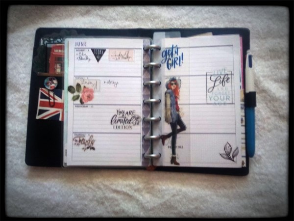 Since we’ve been vagabonding, I have fallen, hard, off the bullet journal train, and as with anything else, the longer away, the longer the road back. Still, as I’m herding cats to get my stuff back together, I do better with structure, so back to bujo it is. When I saw a Happy Planner set up for bujo users, I had to give it a try. Still figuring that out, but take a look at the first thing I made in it, my TV tracker. (TV being Nexflix, Hulu, etc)