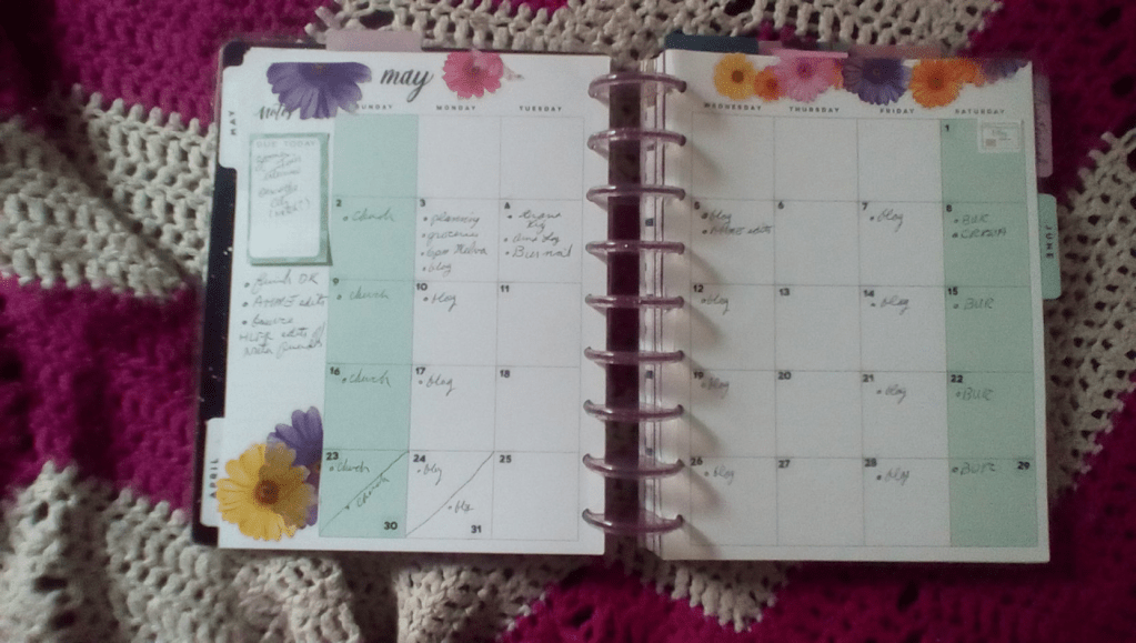 At the start of a new month, I like to pick a theme for my planners and sometimes journals. Novel notebooks are a different story (pun intended) because they don’t depend on real life timeframes, and have their own, especially the historicals. Some months are easy: January is New Year, February is Valentine’s Day, etc. May? Mother’s Day is tricky, so that’s a no for themes. Housemate’s birthday is in May. I have given her the option to choose an element for the planner deco, and her only request was “cool colors.” That fits well with the theme many in the planner community follow: Mermay.