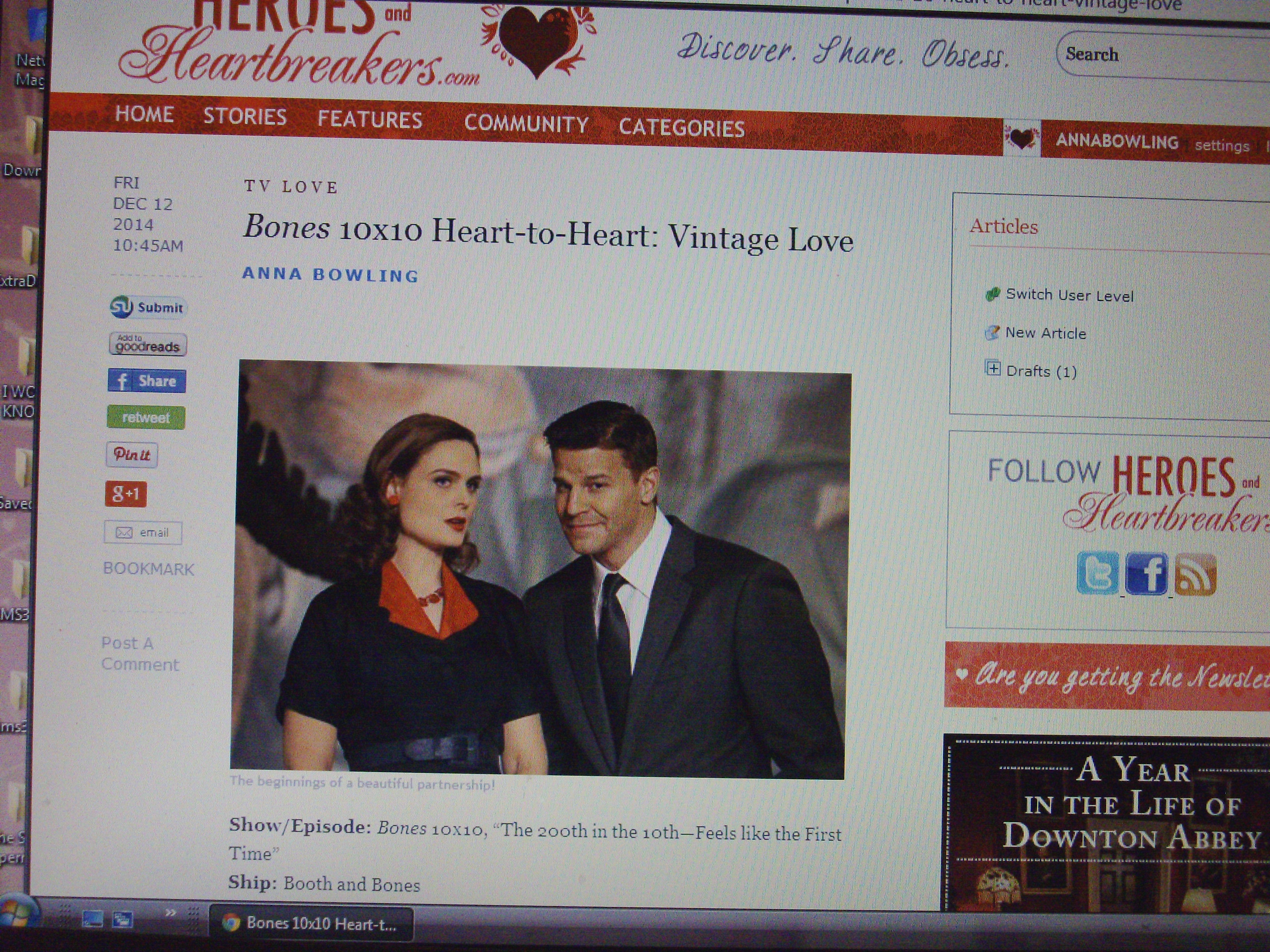 Anty worked a lot this week. She has a new post up at Heroes and Heartbreakers, about the 200th episode of Bones. It is here and it looks like this: