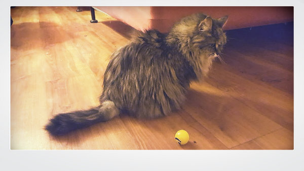 Okay, I think that’ all the stuff I have to say before the big things. The first of which is that Skye came home. Well, sort of. She is the one in the box. It is kind of sad for the humans, because Skye is still on the other side of Rainbow Bridge, and also kind of nice, because there is now something to touch when they want to feel closer to her. In today’s picture, you see me trying to play nice with my sister. So far, so good. We both have exactly the same degree of interest in the green ball, so we have that going for us.